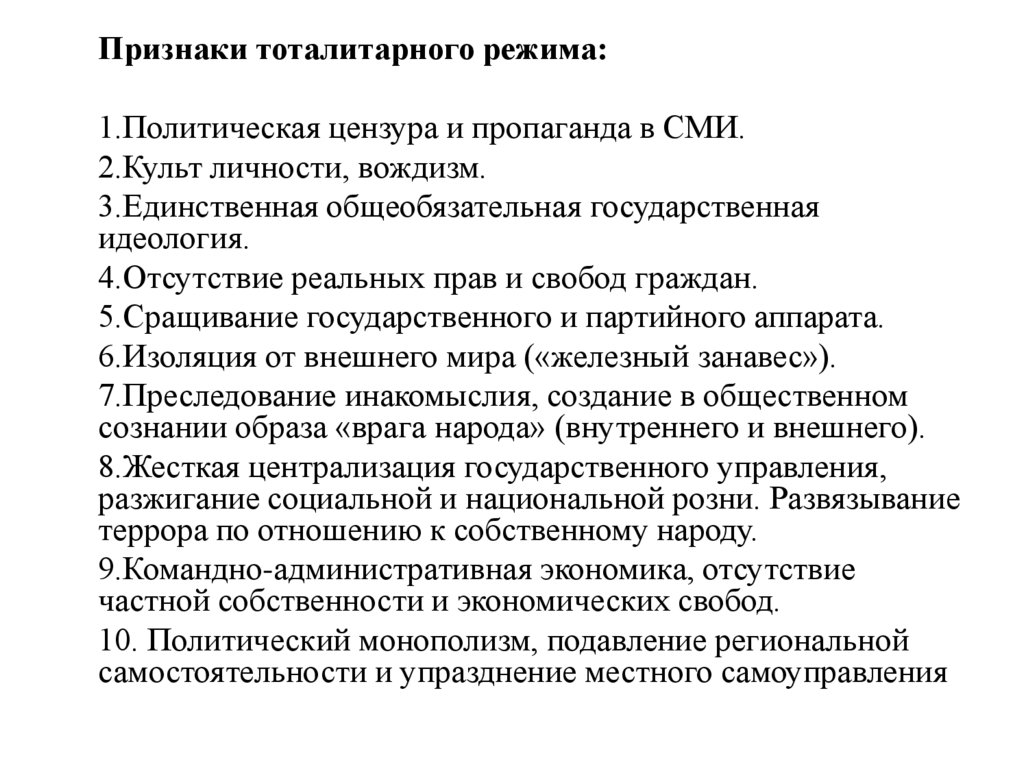Признаки тоталитарного режима:1.Политическая цензура и пропаганда в СМИ.
