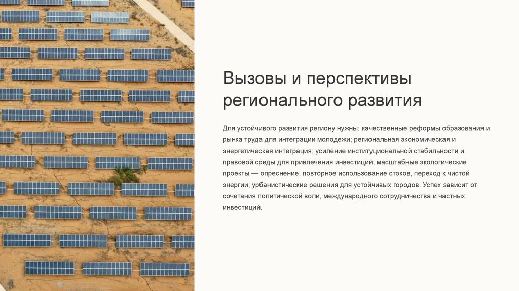 Демографические вызовы (молодежь, миграция) и экологические риски требуют комплексных, долгосрочных решений. В то же время страны,