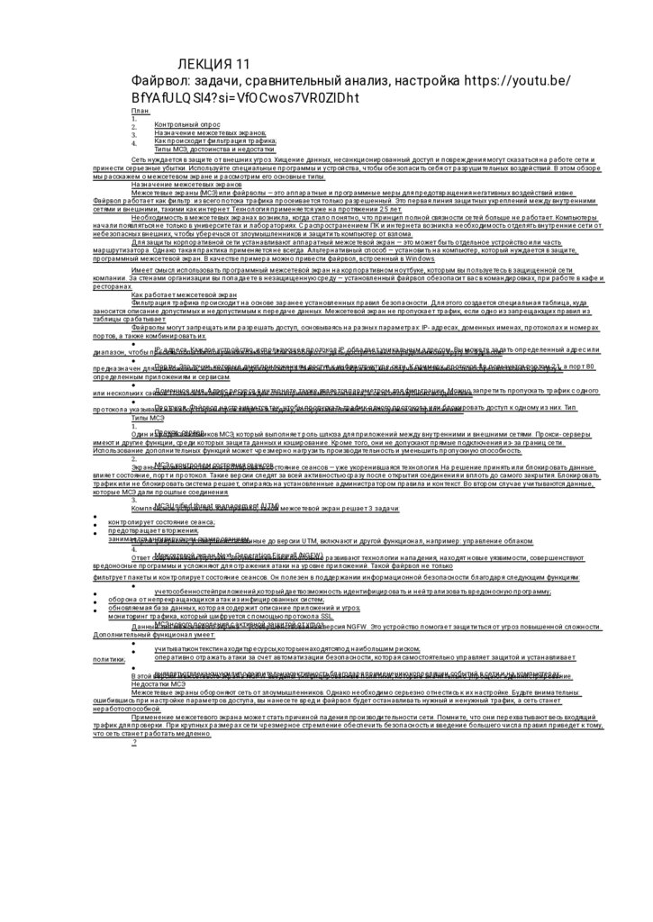ЛЕКЦИЯ 11Файрвол: задачи, сравнительный анализ, настройка https://youtu.be/
