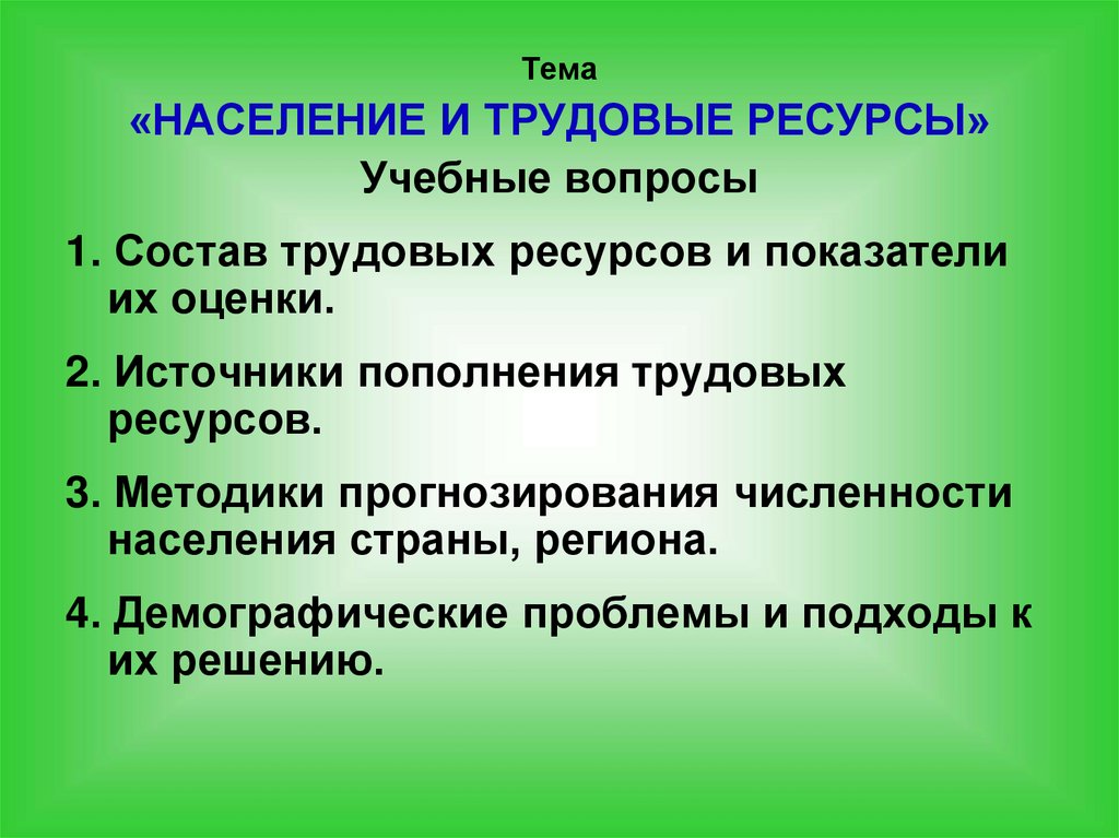 Тема«НАСЕЛЕНИЕ И ТРУДОВЫЕ РЕСУРСЫ»
