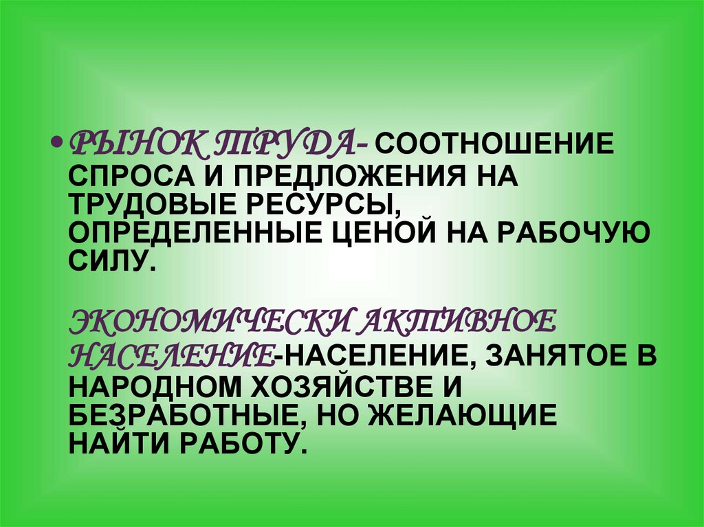 •РЫНОК ТРУДА- СООТНОШЕНИЕСПРОСА И ПРЕДЛОЖЕНИЯ НА