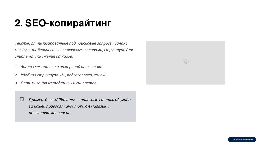 2. SEO-копирайтингТексты, оптимизированные под поисковые запросы: баланс