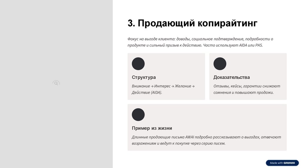 3. Продающий копирайтингФокус на выгоде клиента: доводы, социальное подтверждение, подробности о