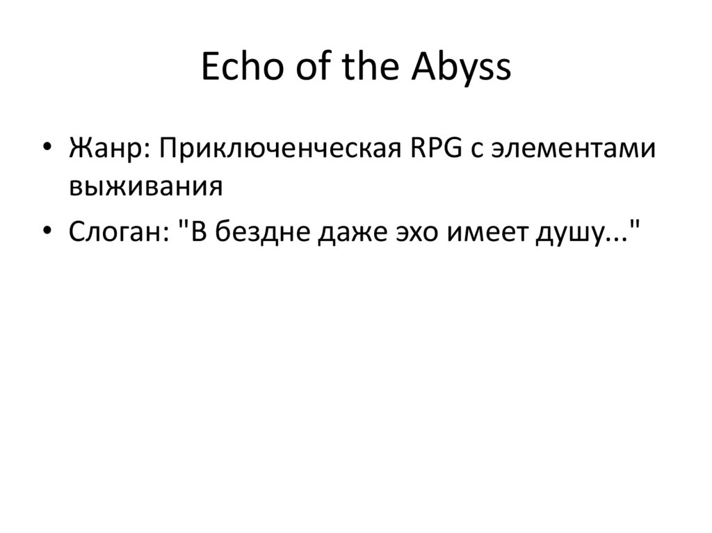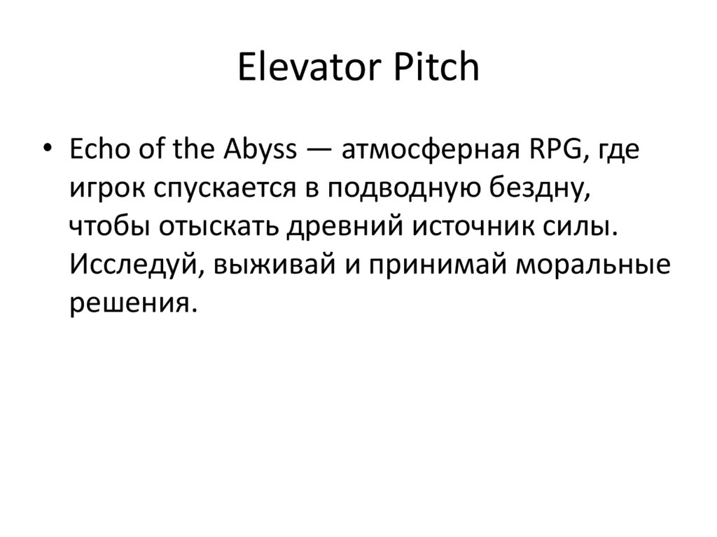 Elevator Pitch• Echo of the Abyss — атмосферная RPG, где