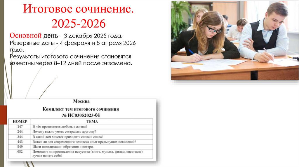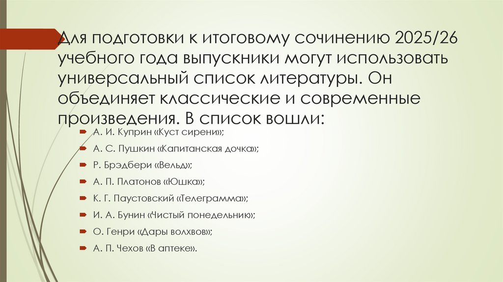 6. Для подготовки к итоговому сочинению 2025/26 учебного года выпускники могут использовать универсальный список литературы. Он