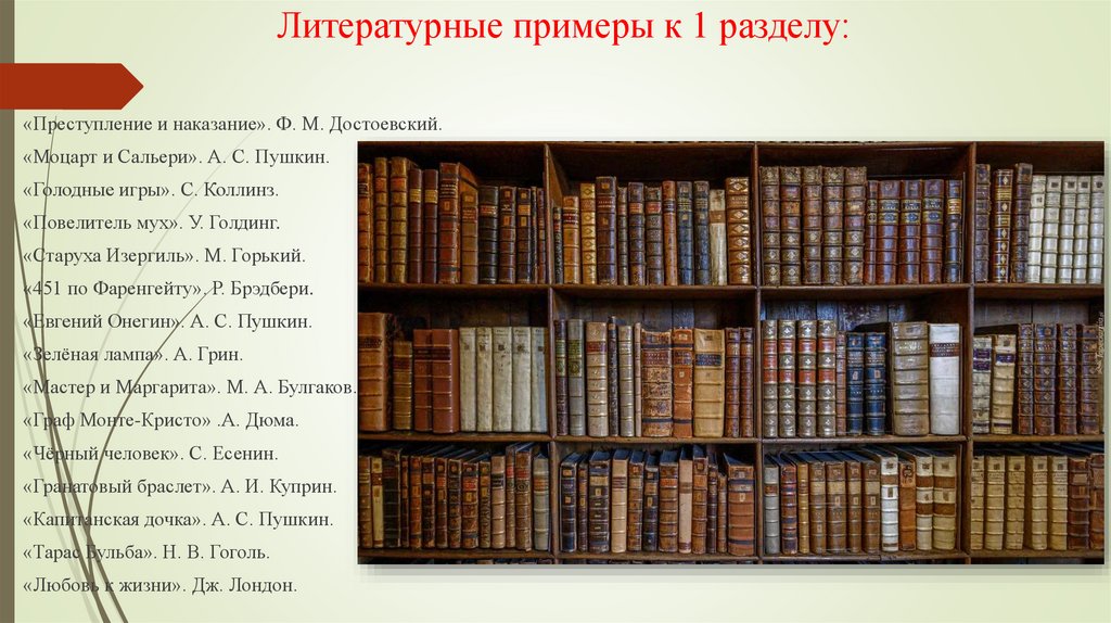 Литературные примеры к 1 разделу:«Преступление и наказание». Ф. М. Достоевский.