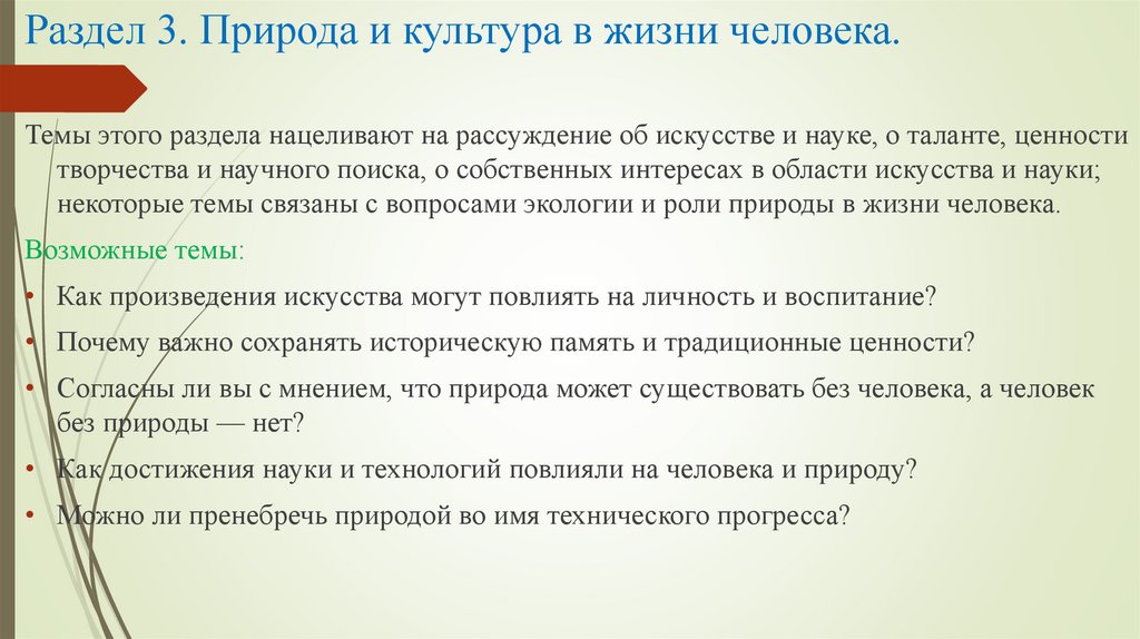 Раздел 3. Природа и культура в жизни человека.Темы этого раздела: