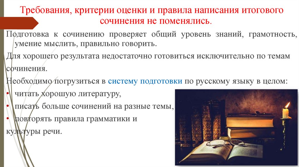 Подготовка к сочинению проверяет общий уровень знаний, грамотность,
