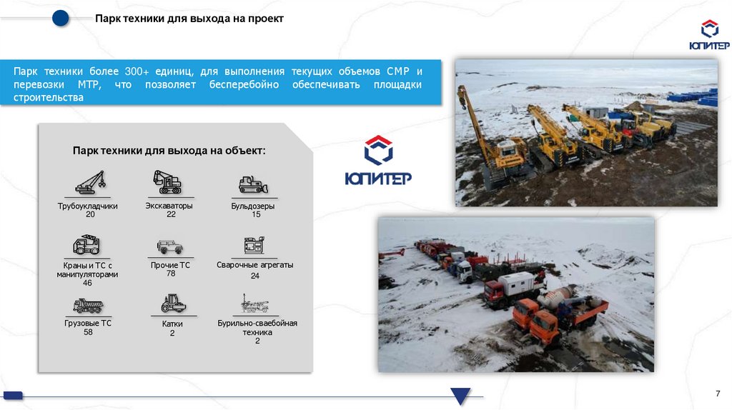 Парк техники для выхода на проектПарк техники более 300+ единиц, для выполнения текущих объемов СМР и