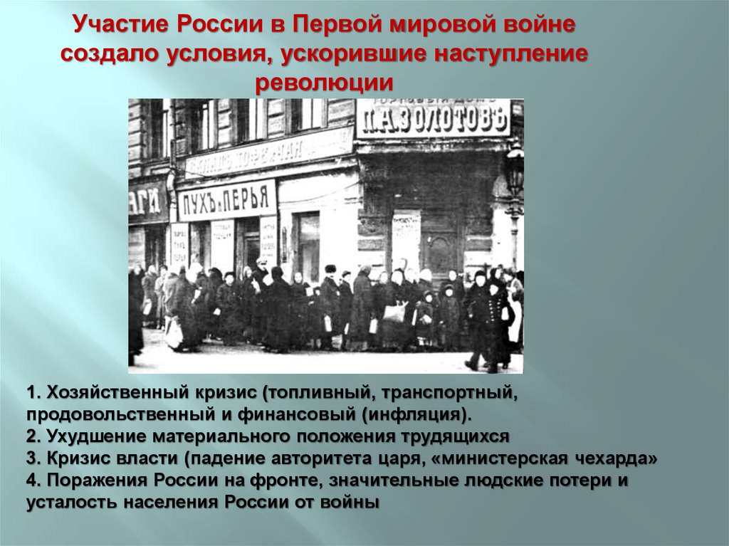 Частая сменяемость министров, права –центрическая дума, распутинский период привел к