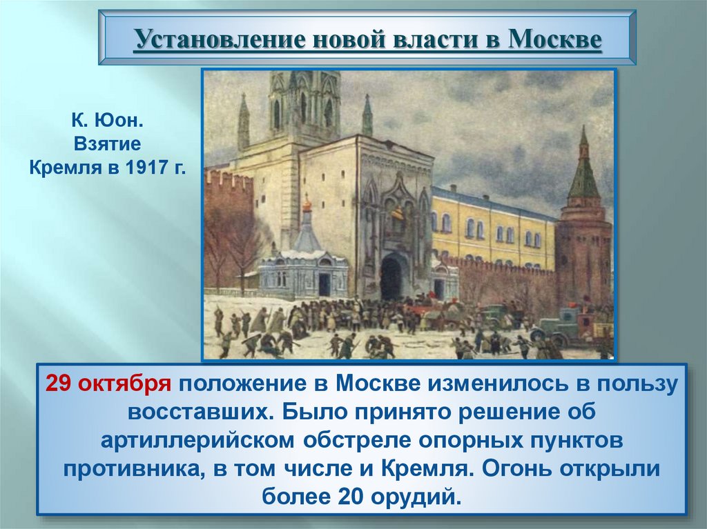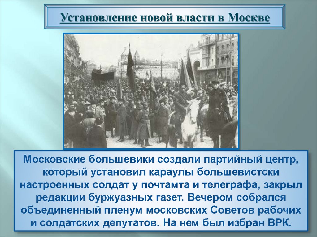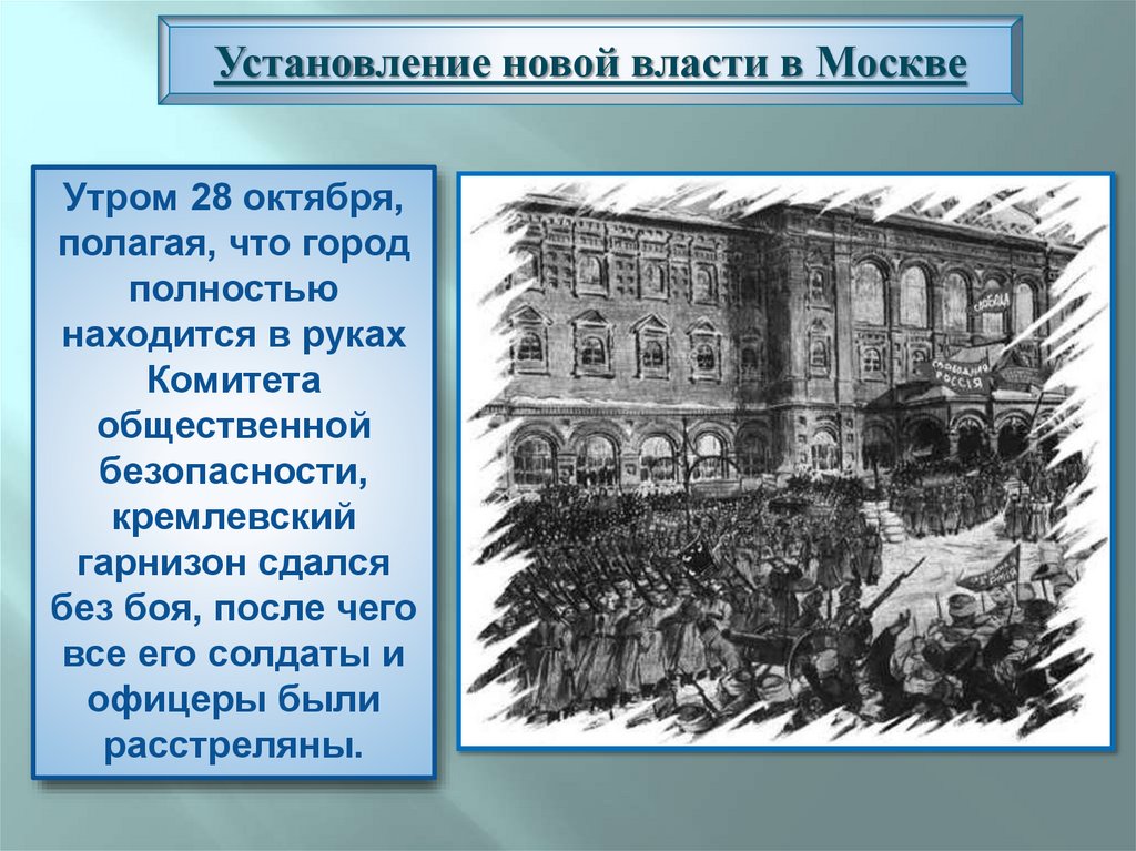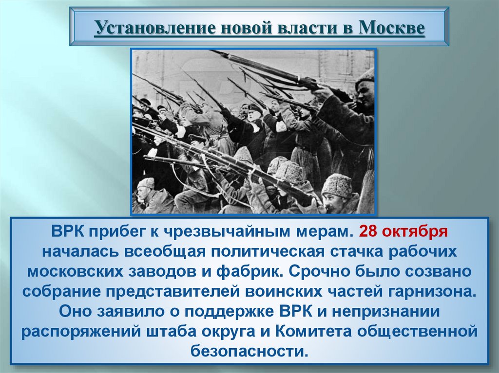 Установление новой власти в МосквеВРК прибег к чрезвычайным мерам. 28 октября