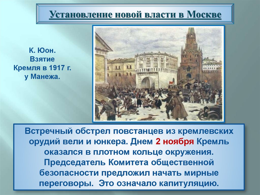 орудий вели и юнкера. Днем 2 ноября Кремль