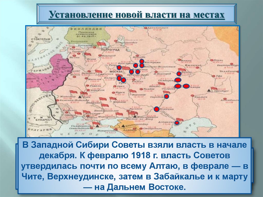Установление новой власти на местахВ Западной Сибири Советы взяли власть в начале