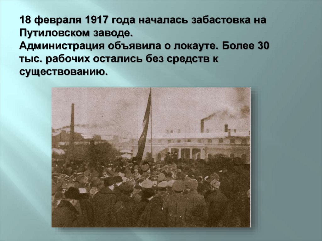18 февраля 1917 года началась забастовка наПутиловском заводе.