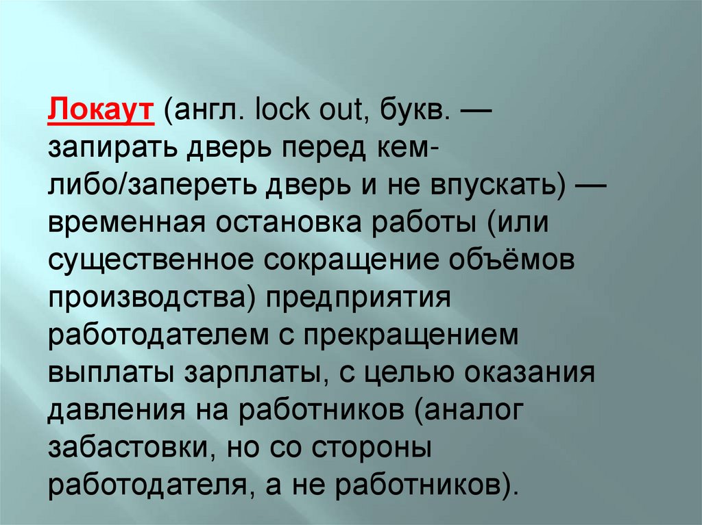 Локаут (англ. lock out, букв. —запирать дверь перед кемлибо/запереть дверь и не впускать) —
