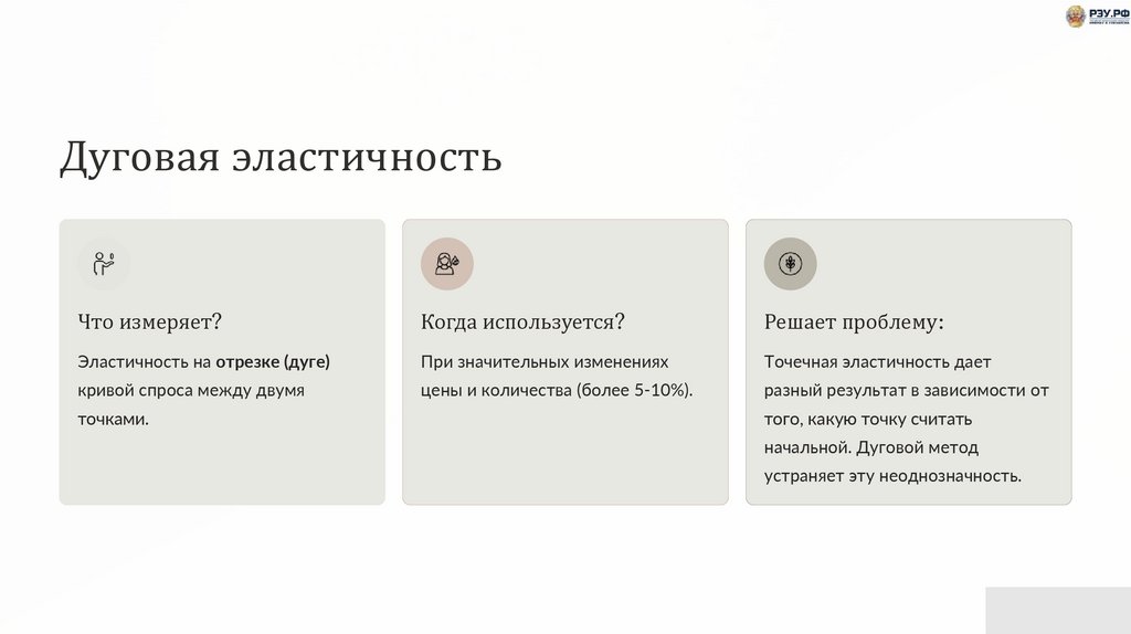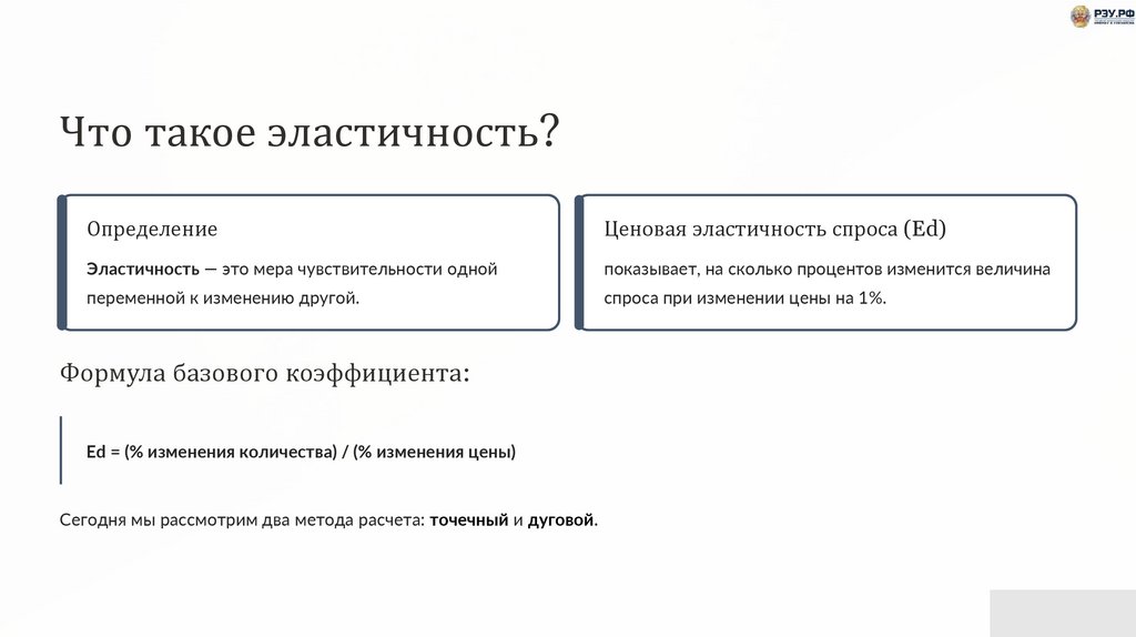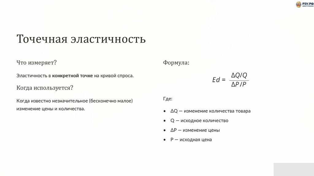 Ключевое отличие: В знаменателе используются средние значения цены и количества, что делает расчет симметричным.