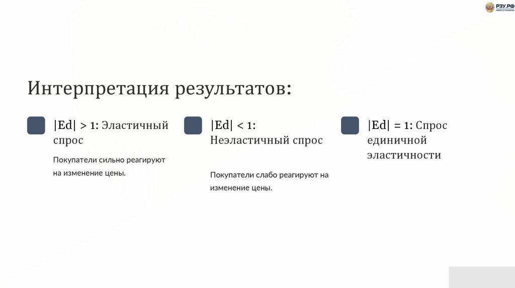 Интерпретация результатов:|Ed| > 1: Эластичный
