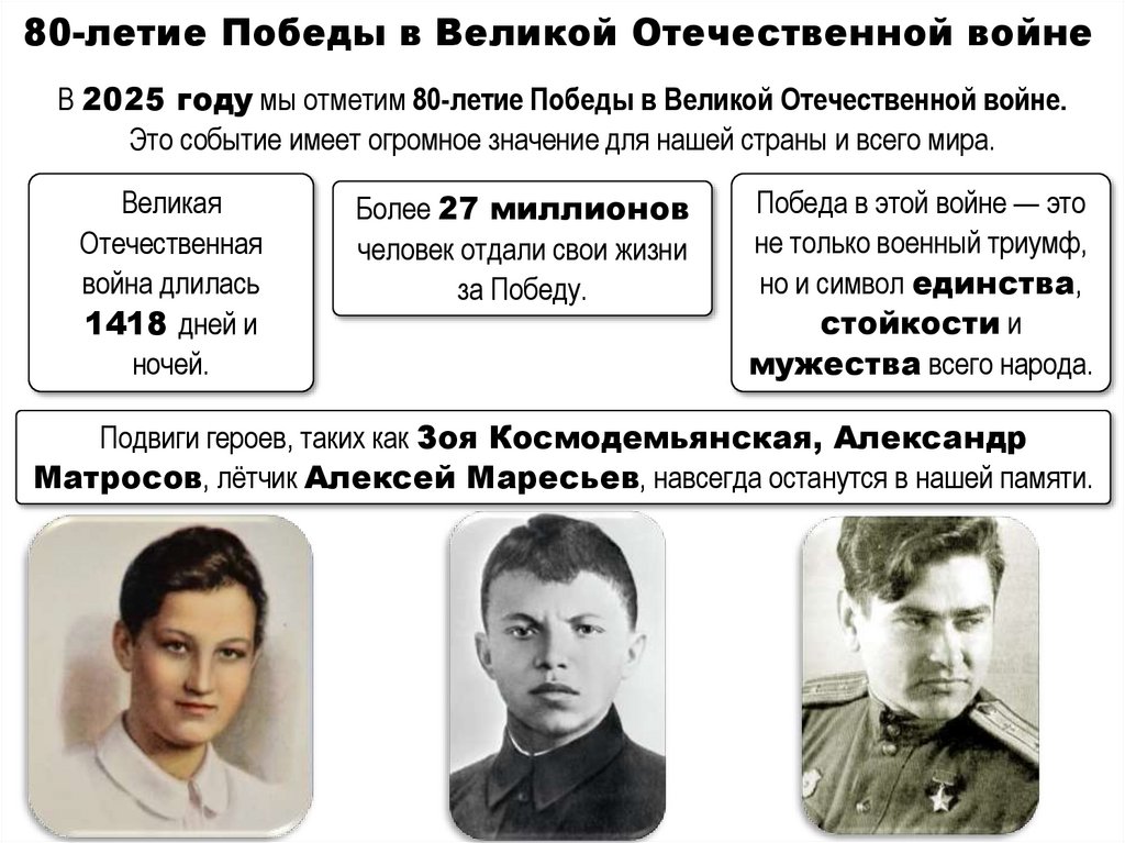 80-летие Победы в Великой Отечественной войнеВ 2025 году мы отметим 80-летие Победы в Великой Отечественной войне.