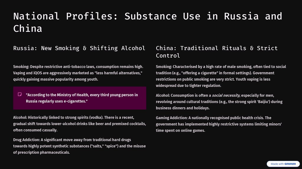 National Profiles: Substance Use in Russia andChina