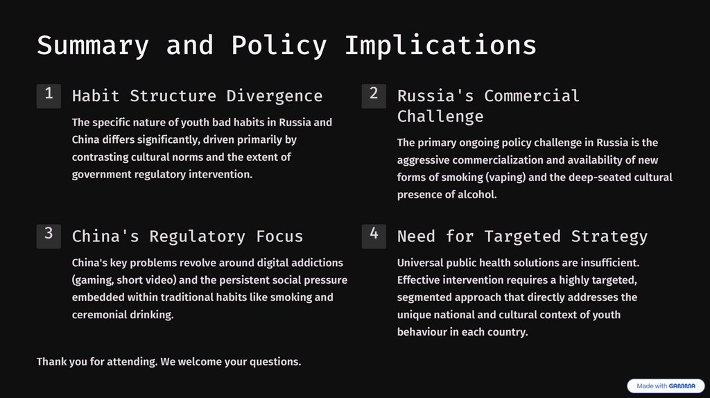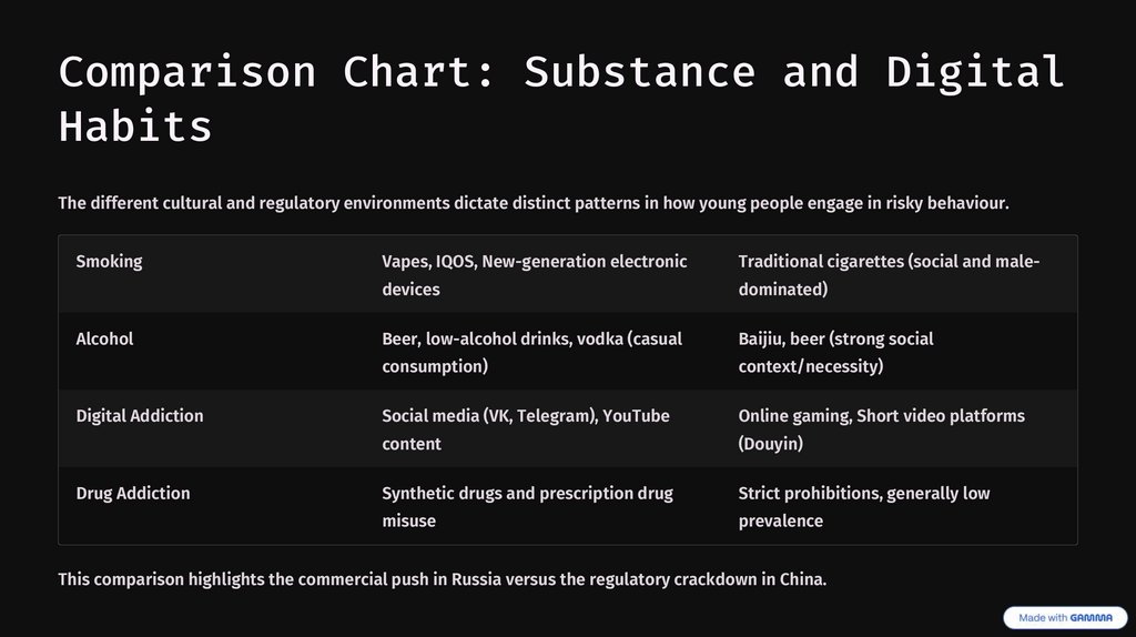 Bad Habits of Young Peoplein Russia and China