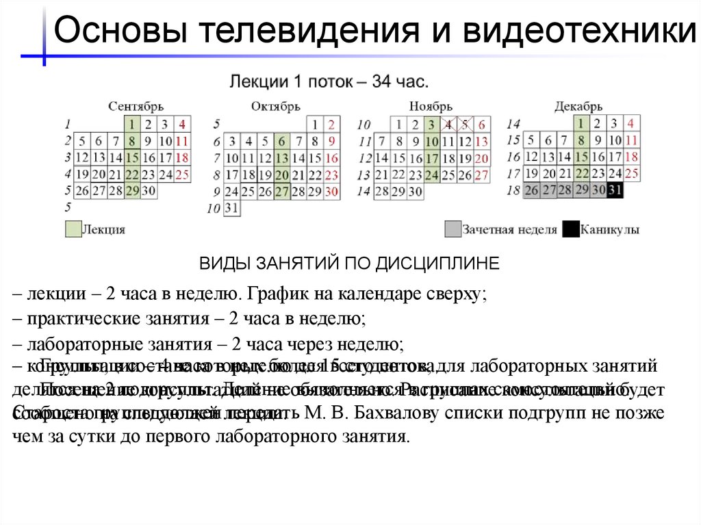 Основы телевидения и видеотехникиВИДЫ ЗАНЯТИЙ ПО ДИСЦИПЛИНЕ