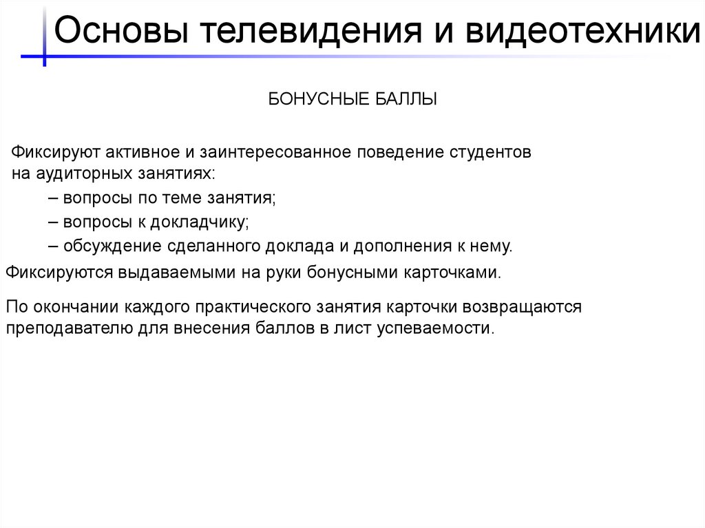 Основы телевидения и видеотехникиБОНУСНЫЕ БАЛЛЫ