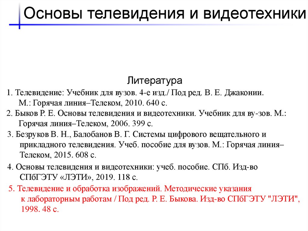 Основы телевидения и видеотехникиЛитература
