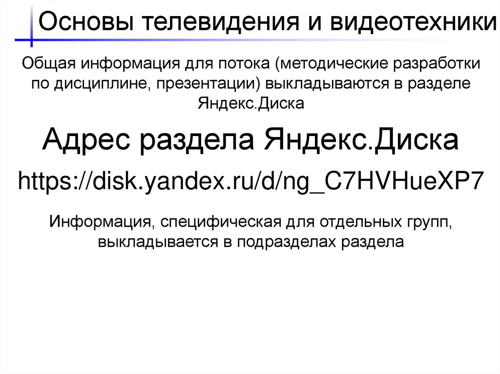 Основы телевидения и видеотехникиОбщая информация для потока (методические разработки