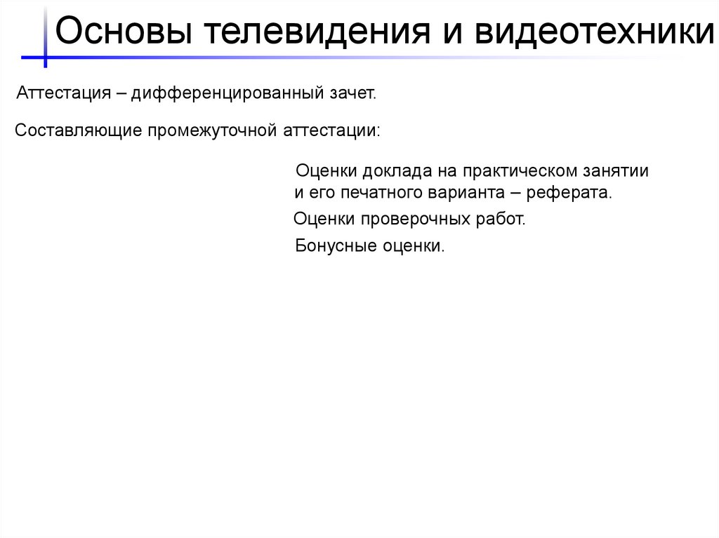 Основы телевидения и видеотехникиАттестация – дифференцированный зачет.