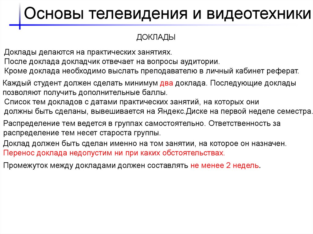 Основы телевидения и видеотехникиДОКЛАДЫ