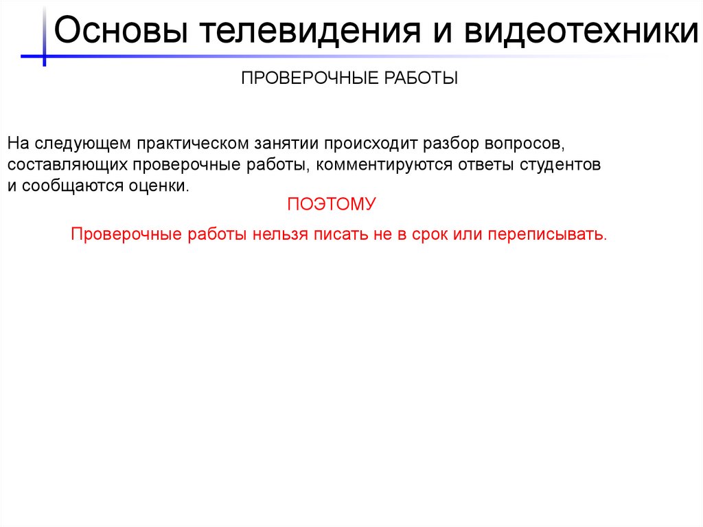 Основы телевидения и видеотехникиПРОВЕРОЧНЫЕ РАБОТЫ