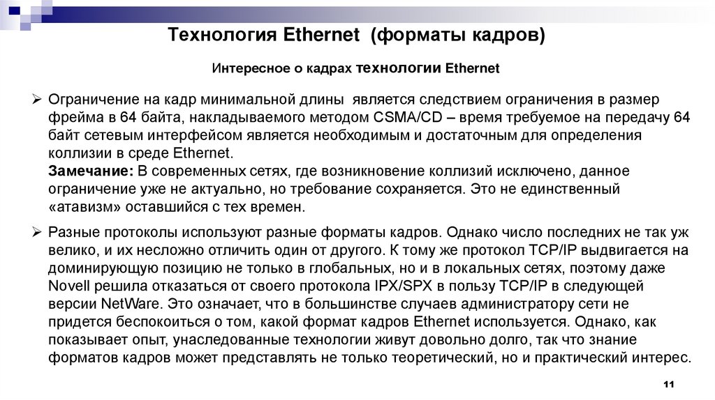 Ограничение на кадр минимальной длины является следствием ограничения в размер