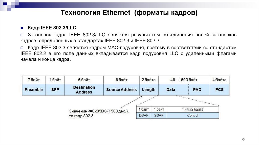 кадров, определенных в стандартах IEEE 802.3 и IEEE 802.2.