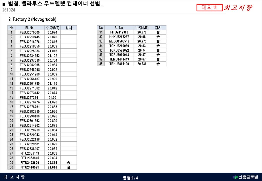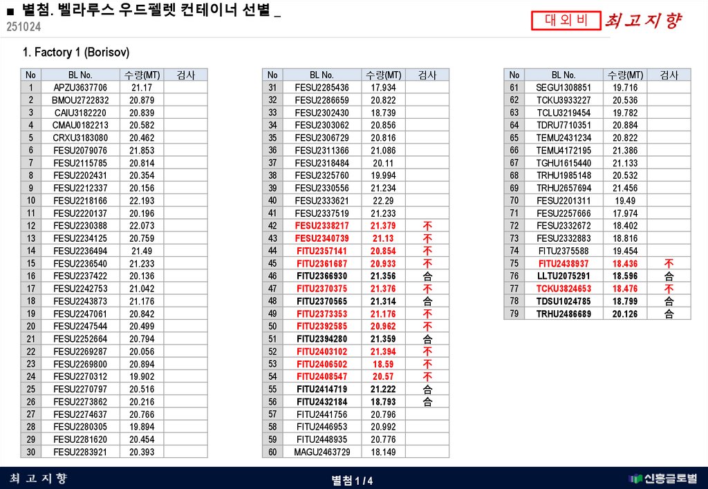 ■ 별첨. 벨라루스 우드펠렛 컨테이너 선별 _대외비