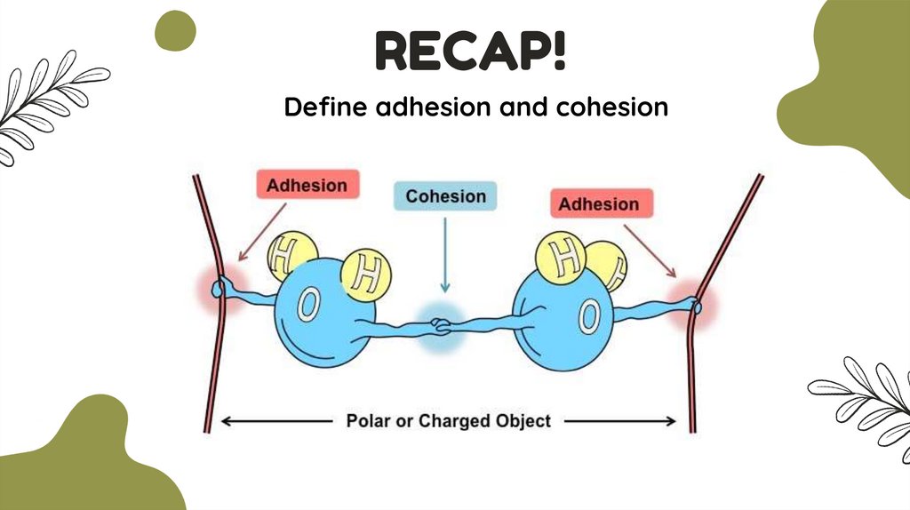 RECAP!Define adhesion and cohesion