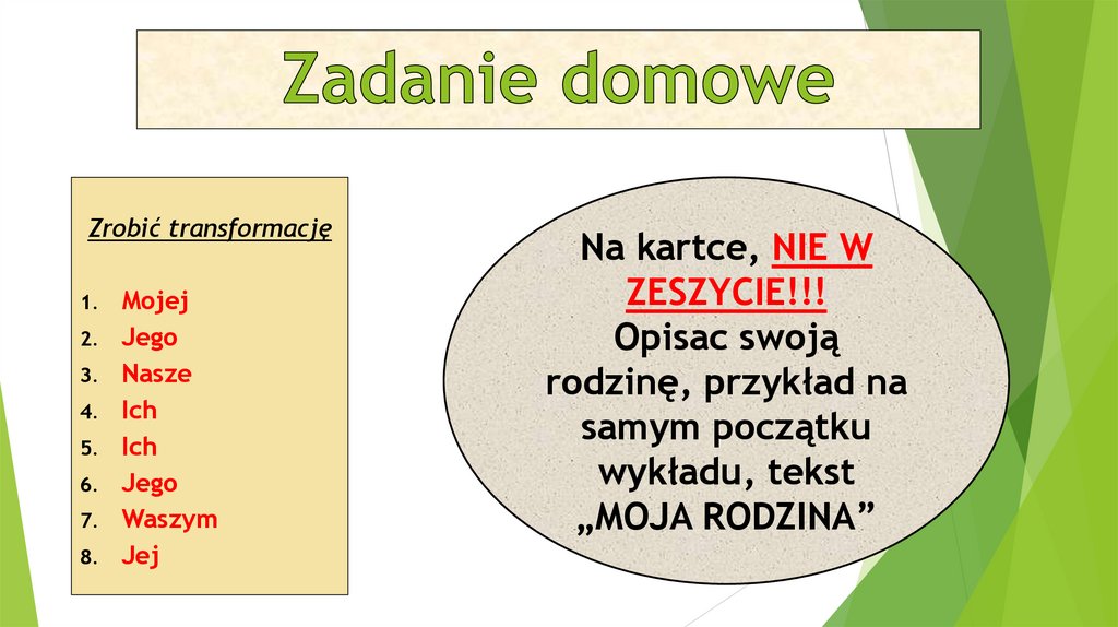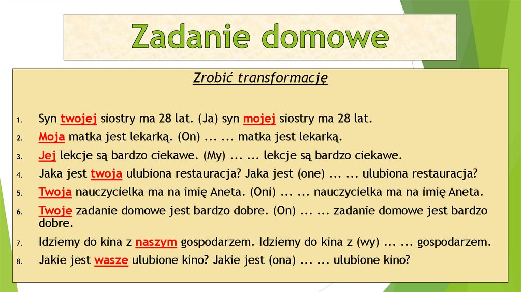 Twoje zadanie domowe jest bardzo dobre. (On) ... ... zadanie domowe jest bardzo