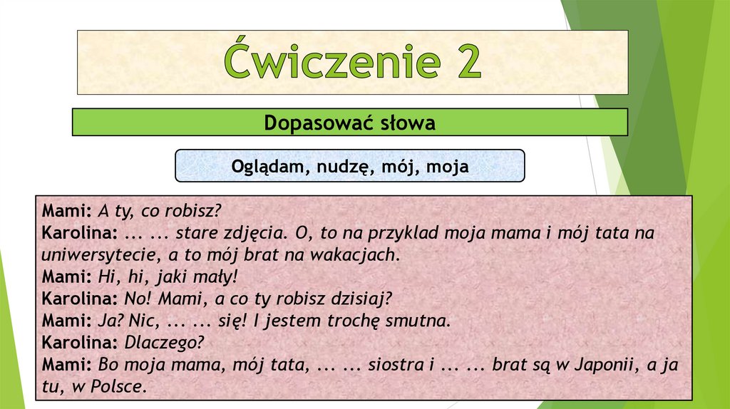 Mami: Bo moja mama, mój tata, ... ... siostra i ... ... brat są w Japonii, a ja