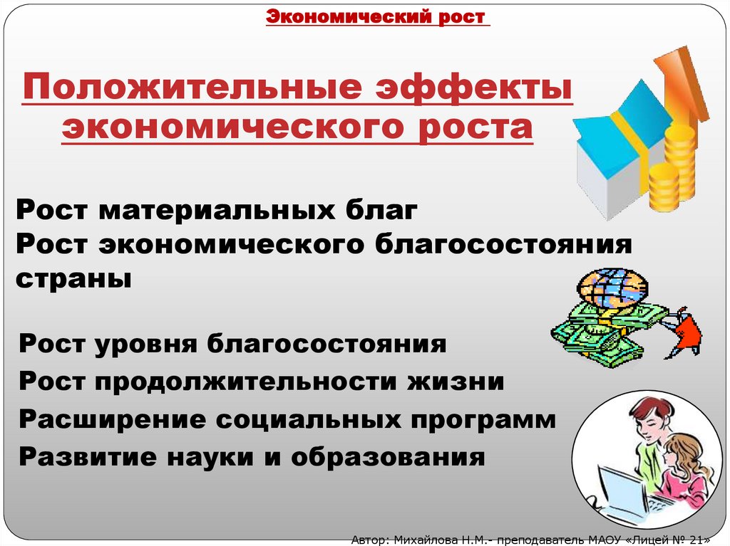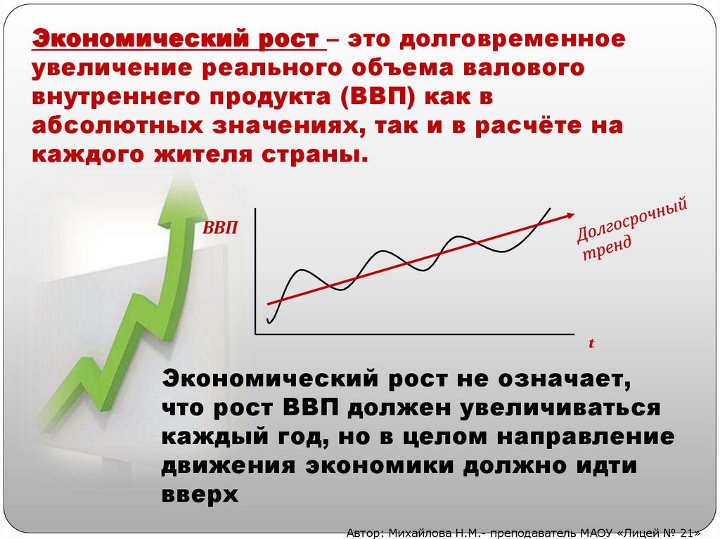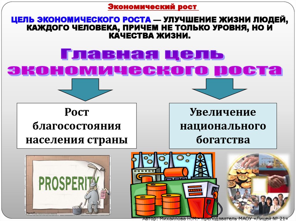 Экономический ростЦЕЛЬ ЭКОНОМИЧЕСКОГО РОСТА — УЛУЧШЕНИЕ ЖИЗНИ ЛЮДЕЙ,