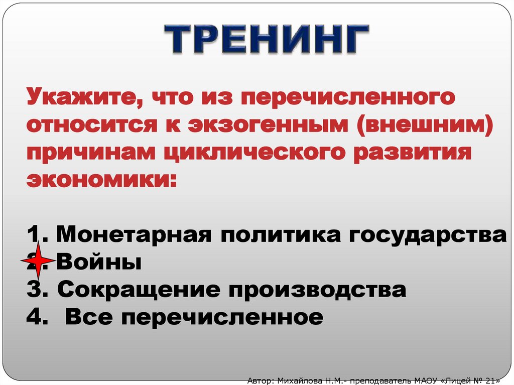 Автор: Михайлова Н.М.- преподаватель МАОУ «Лицей № 21»