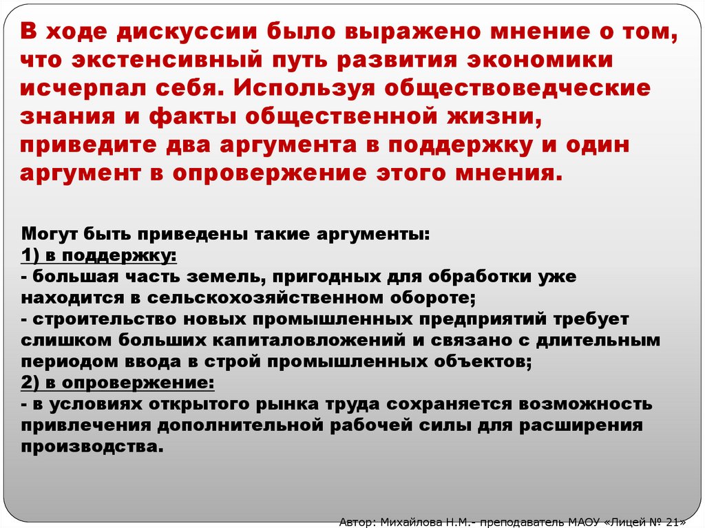 В ходе дискуссии было выражено мнение о том,что экстенсивный путь развития экономики