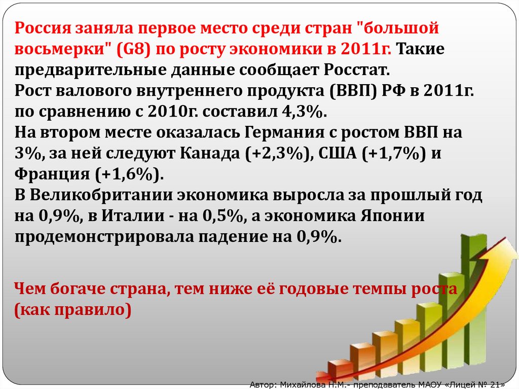 Россия заняла первое место среди стран "большойвосьмерки" (G8) по росту экономики в 2011г. Такие