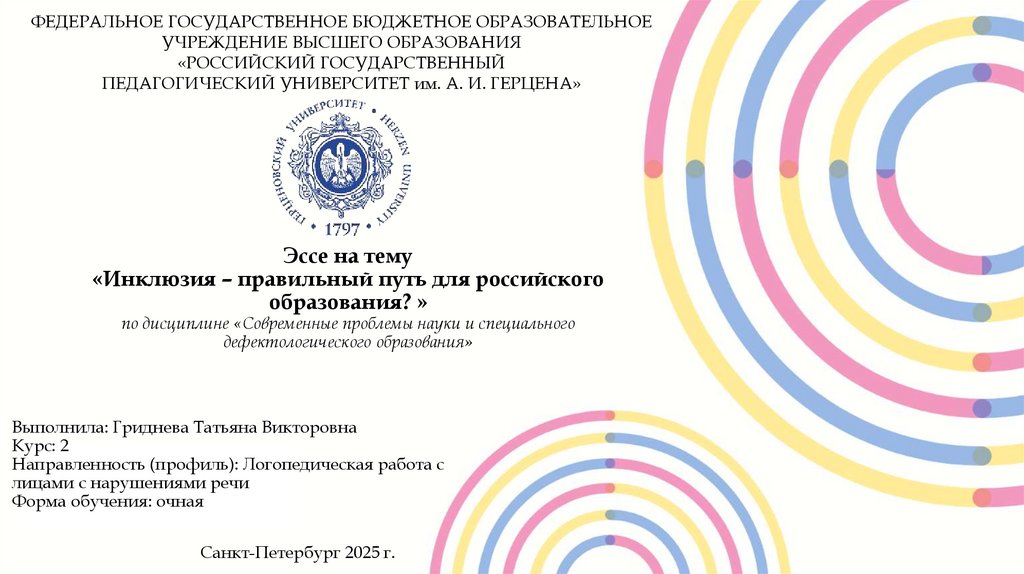 1. Эссе на тему «Инклюзия – правильный путь для российского образования? » по дисциплине «Современные проблемы науки и