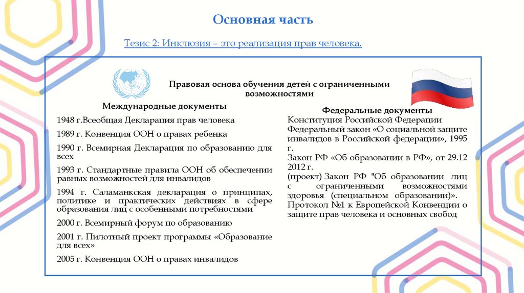 Основная частьТезис 2: Инклюзия – это реализация прав человека.