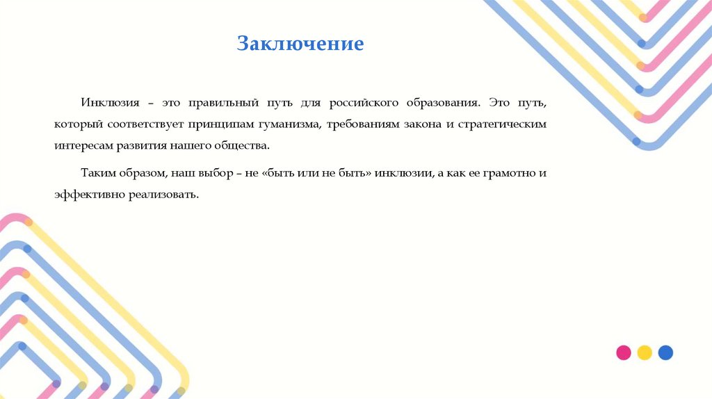 ЗаключениеИнклюзия – это правильный путь для российского образования. Это путь,