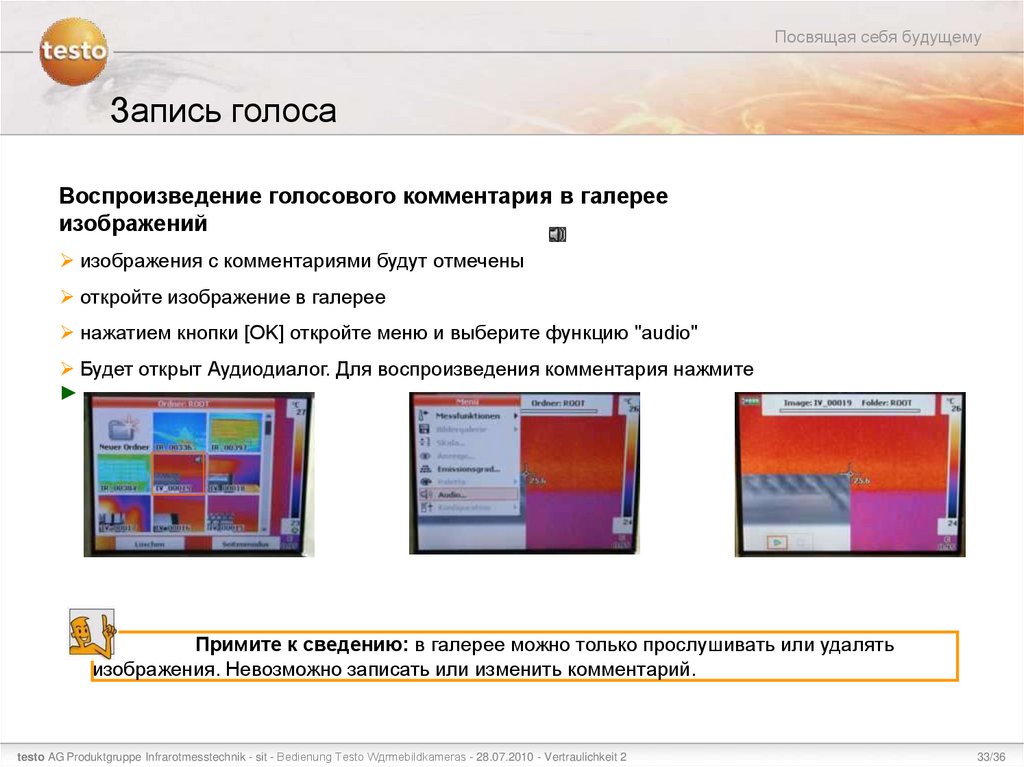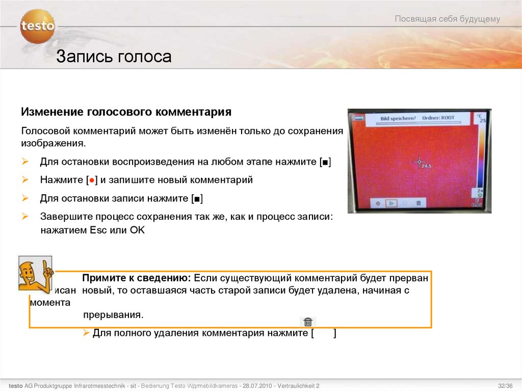 testo AG Produktgruppe Infrarotmesstechnik - sit - Bedienung Testo Wдrmebildkameras - 28.07.2010 - Vertraulichkeit 2
