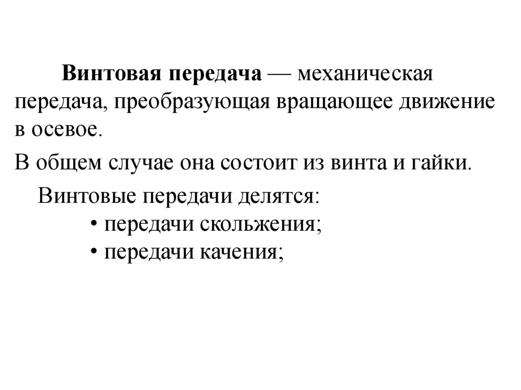 Винтовая передача — механическаяпередача, преобразующая вращающее движение