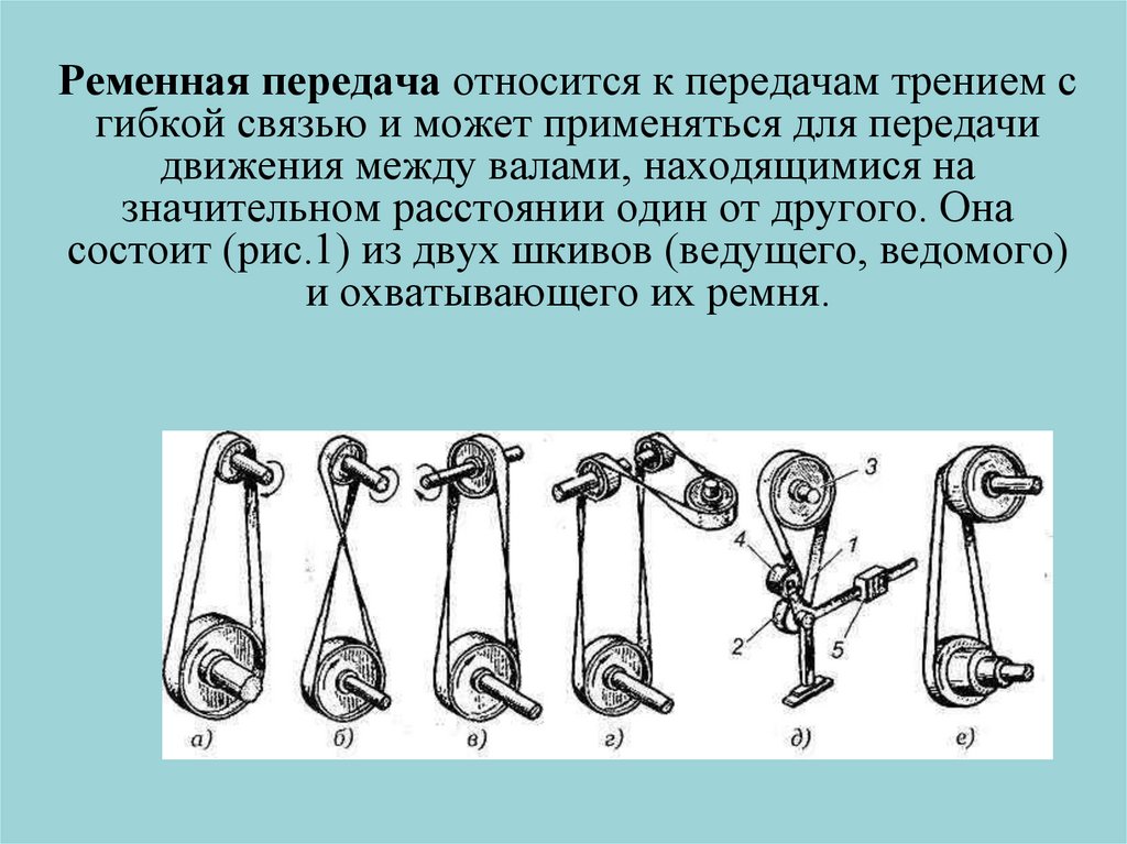 Ременная передача относится к передачам трением сгибкой связью и может применяться для передачи