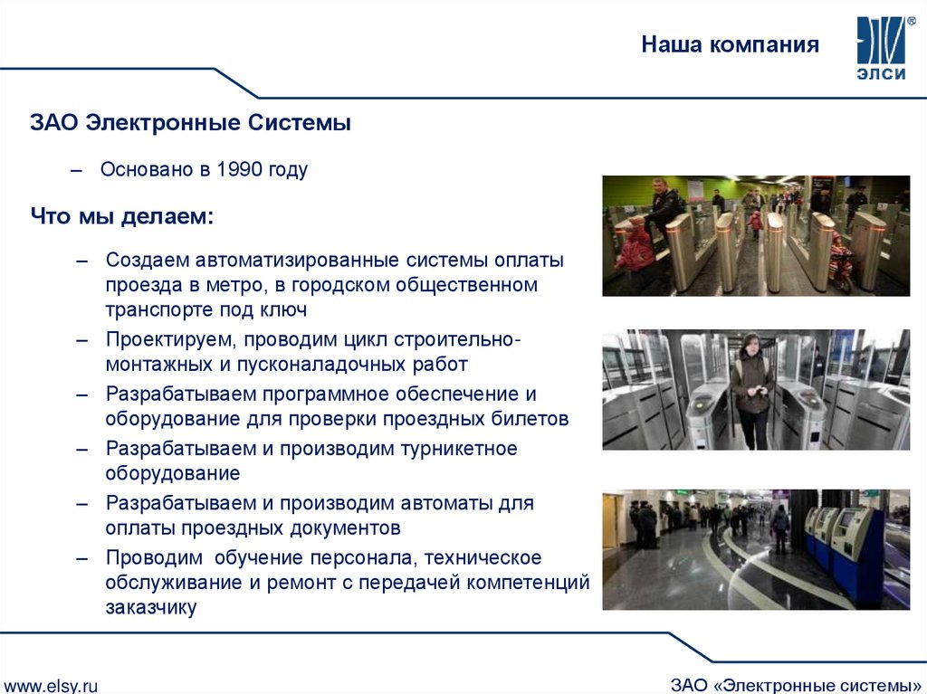 ЗАО Электронные СистемыКомплексные системы для общественно транспорта