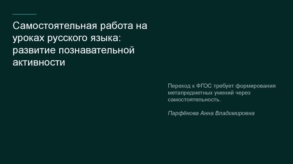 Сущность самостоятельной работы и её роль в ФГОССамостоятельная работа — целенаправленная, внутренняя и структурированная