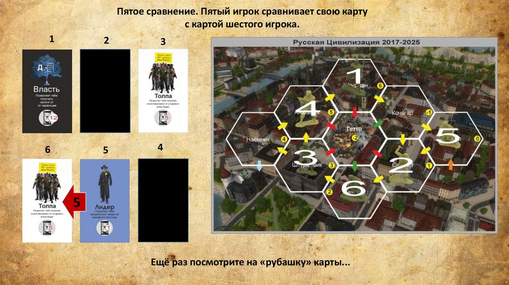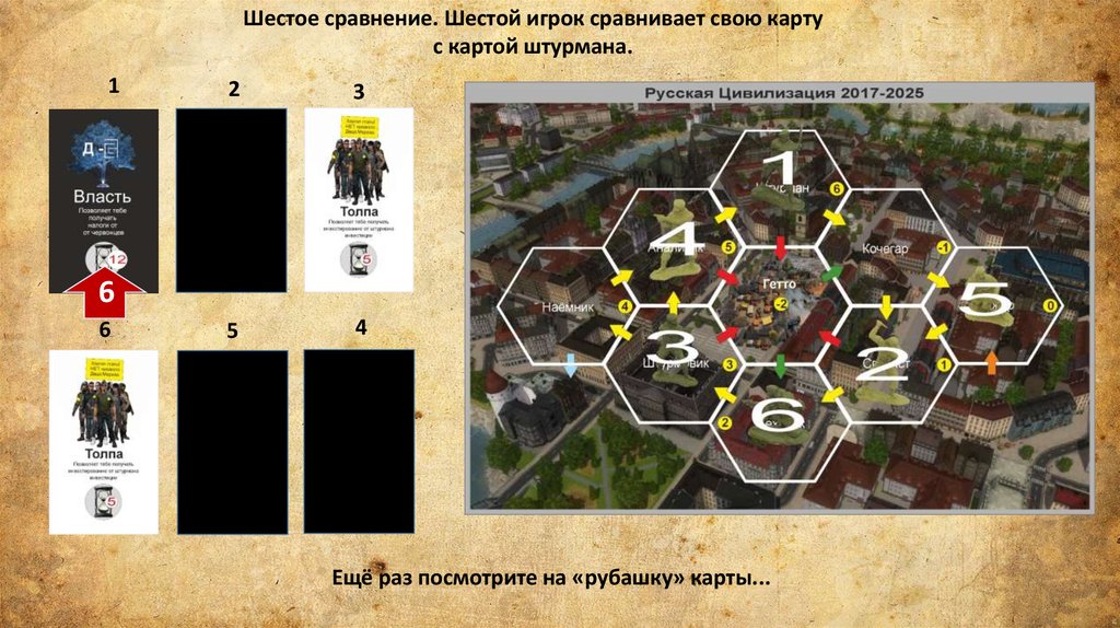 Шестое сравнение. Шестой игрок сравнивает свою картус картой штурмана.